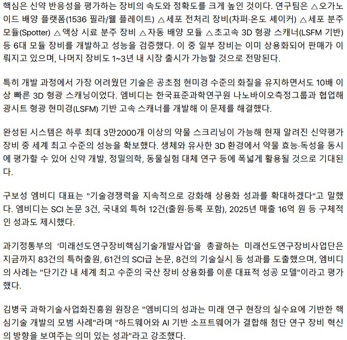 국산 연구장비 자립화 성과…엠비디, 세계 최고속 신약평가 시스템 개발